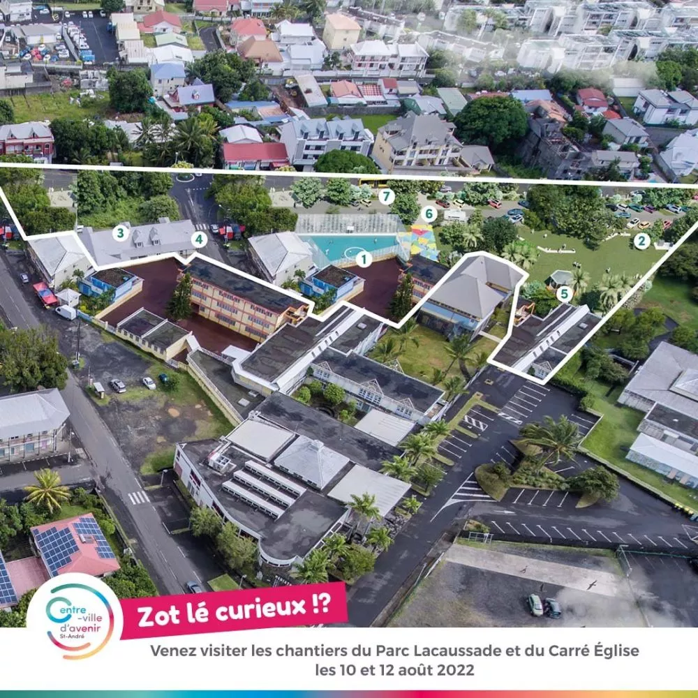Saint-André : visiter les chantiers du Parc Lacaussade et du Carré Église (marché couvert et cour de l’école des Frères)