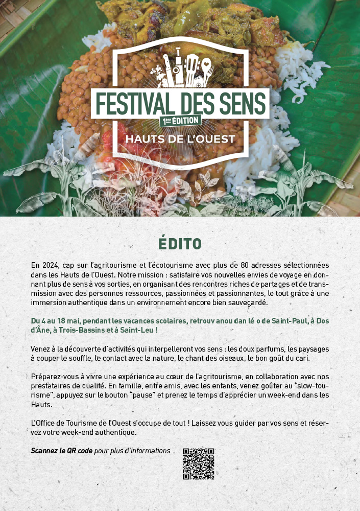 Programme détaillé et réservations sur : ouest-lareunion.com/festival-des-sens