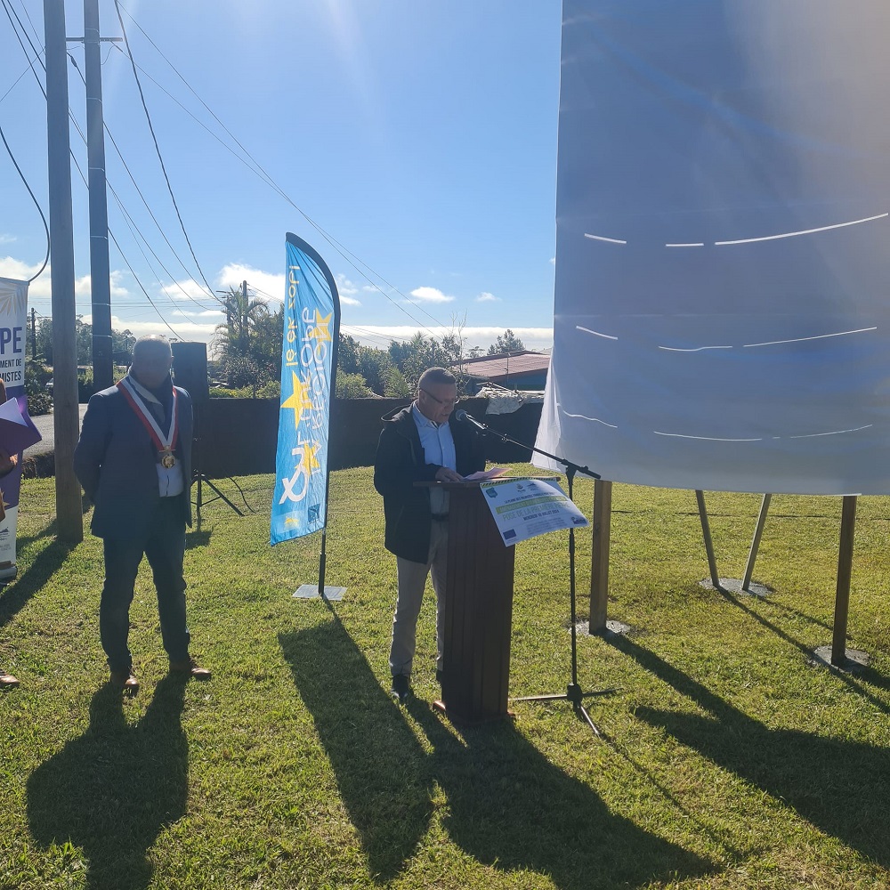 Le maire de La Plaine des Palmistes a lancé un nouveau chantier d’aménagement de pistes cyclables par la pose d’une première pierre ce jour, en présence de Mme Amandine RAMAYE, Vice-Présidente déléguée à la démocratie participative et entouré des invités et des habitants du quartier qui ont répondu présent.