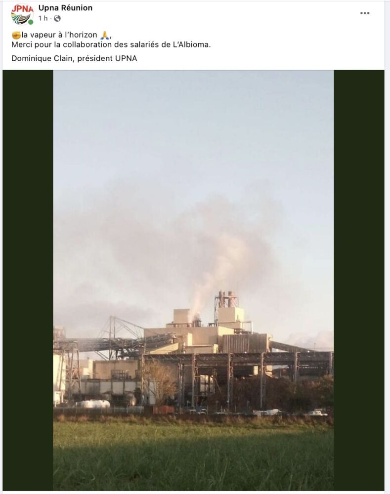 Dans une déclaration faite sur Facebook, Dominique Clain, président de l’UPNA (Unis Pour Nos Agriculteurs), a exprimé sa satisfaction après avoir observé le redémarrage progressif de l’usine Albioma. Des signes encourageants, notamment la vapeur visible à l’horizon, confirment que l’activité reprend son cours.