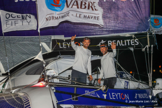 Ce mardi 23 novembre, à 1 heure 42 minutes et 43 secondes en Martinique (6 heures 42 minutes et 43 secondes en heure métropolitaine), Sam Goodchild et Aymeric Chappellier ont franchi la ligne d’arrivée de la 15ème édition de la Transat Jacques Vabre Normandie Le Havre en troisième position de la catégorie Ocean Fifty. Leyton aura mis 15 jours 17 heures 15 minutes et 43 secondes pour parcourir les 5 800 milles théoriques depuis Le Havre à la vitesse moyenne de 15,24 nœuds, mais il a réellement parcouru 6680,21 milles à 17,71 nœuds. Son écart au premier, Primonial, est de 3 heures 48 minutes et 29 secondes.