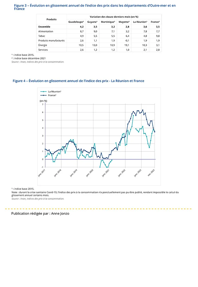 Sur un an, les prix à la consommation augmentent de 3,6 % à La Réunion, comme en France (+3,5 %).