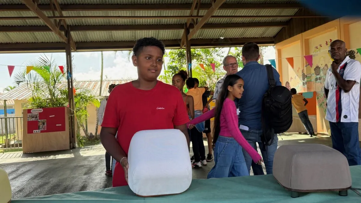 Progressivement, ils ont réalisé un objet contemporain selon un cahier des charges adapté à leur âge; Chaque étape offrant l’occasion d’aborder des notions spécifiques faisant écho aux matières classiques. Outre le plaisir de « faire », ils ont expérimenté la précision et la concentration, mais aussi la coopération et la solidarité afin d’avancer ensemble dans un processus de fabrication. Ils ont chacun fabriqué un pouf en utilisant des matériaux et des outils mis à leur disposition par la Fondation d’entreprise Hermès. Le recteur de la Réunion s’est dit « impressionné » par le travail des élèves. Ecoutez Rostane Mehdi, il est au micro d’Yves Mont-Rouge :