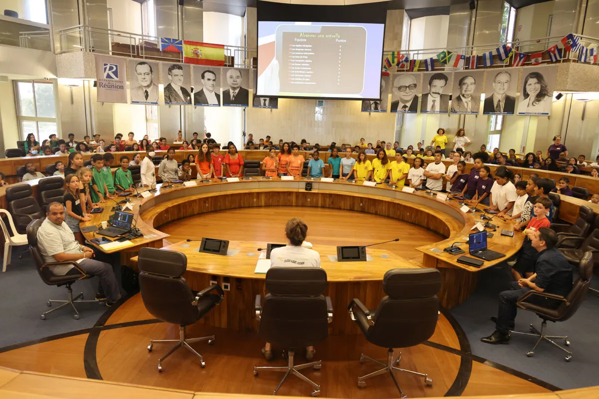 L’Hémicycle du Palais la Source avait des airs de féria ce mardi 4 avril. L’enjeu était de taille, gagner la finale du projet académique « Alcanzar una Strella » en français « atteindre une étoile ». « Ce projet a été mis en place l’année dernière. C’est un travail d’équipe au niveau des enseignants. Il s’agit de mettre en avant la langue espagnole mais surtout de donner une place plus importante à la culture pour que les collégiens puissent avoir des compétences culturelles solides. Des sélections ont eu lieu au niveau des collèges et 3 élèves ont été retenus pour représenter leur établissement. Le niveau de cette année était très impressionnant », explique Marie-Francine Comare, inspectrice académique d’espagnol.