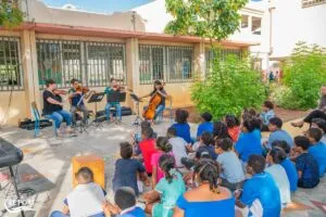 L’action Chorale est un projet pédagogique et culturel mené dans les écoles du Port afin de permettre aux élèves d’accéder à la pratique instrumentale et vocale. Elle est portée par le Village Titan, en partenariat avec la Ville du Port et l’Éducation nationale, dans le cadre de la Cité éducative.