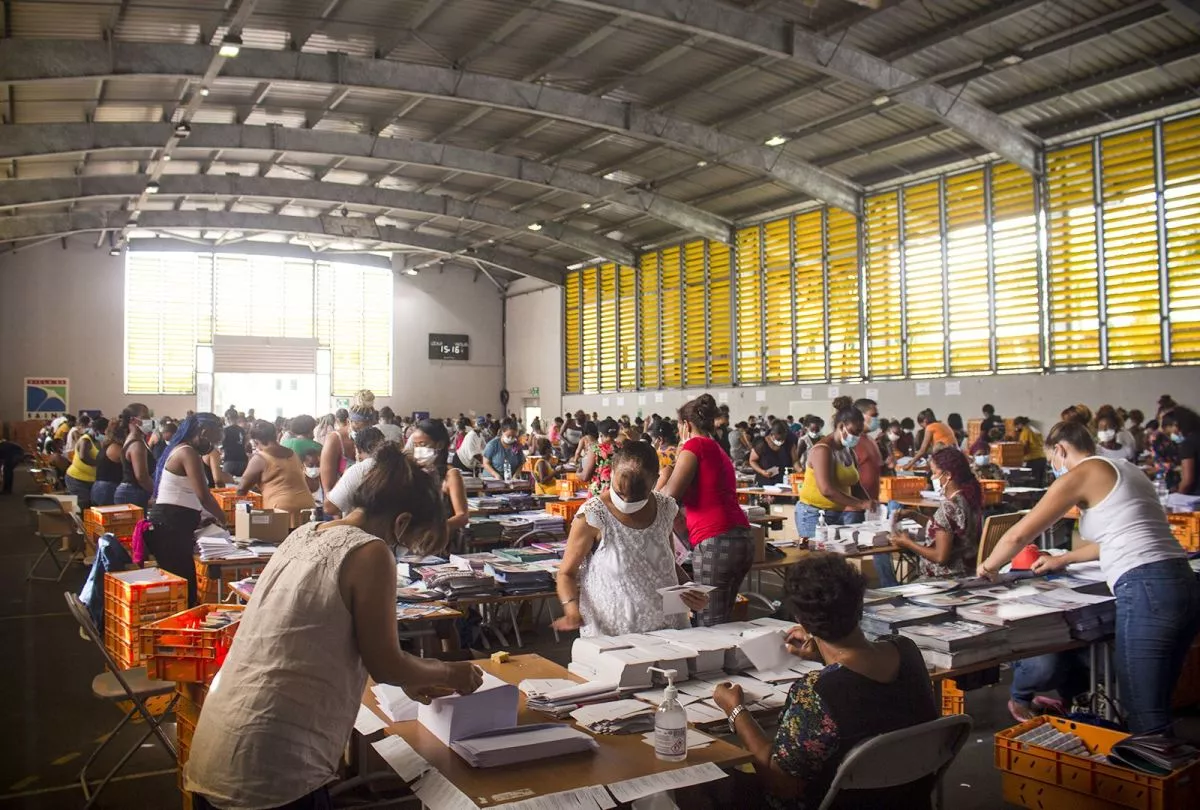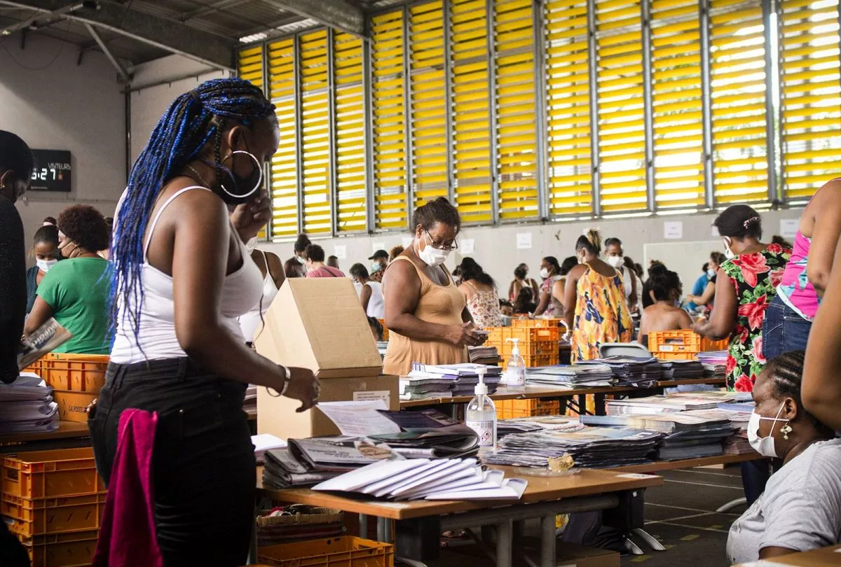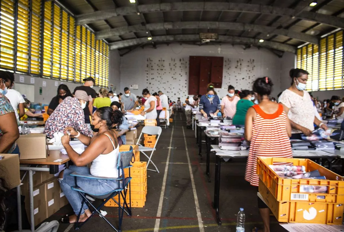 Depuis ce mardi 29 mars et jusqu’au mercredi 6 avril, les petites mains de la mise sous pli de la propagande électorale sont à l’œuvre dans le gymnase Reydellet, du bas de la rivière Saint-Denis.
