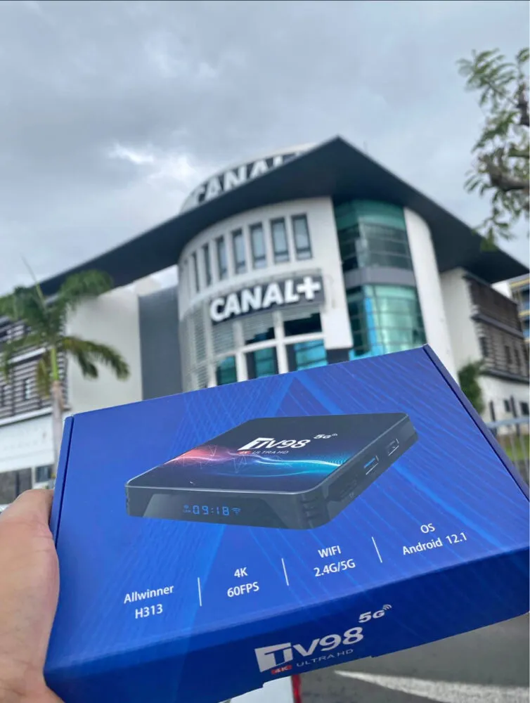 C’est une image aussi insolente que symbolique. Sur le parvis du siège régional de Canal+ à Sainte-Clotilde, un homme tient fièrement dans sa main un boîtier IPTV dernier cri, le TV98 5G Wifi 4K, affiché à la vente pour 180 euros sur son Market Place Facebook. Il ne s’agit pas là d’un simple produit high-tech, mais d’un outil de contournement assumé de la légalité : le boîtier est livré, selon son vendeur, avec une application préinstallée permettant de regarder illégalement des milliers de chaînes du monde entier, des films, des séries, dont celles du groupe Canal+.