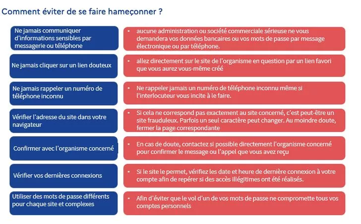 L’hameçonnage est une des techniques frauduleuses destinées à leurrer l’internaute ou l’usager par l’envoi de faux messages (courriels ou SMS) ou l’émission d’appels téléphoniques en se faisant passer pour des tiers de confiance (banques, administrations, fournisseurs d’énergie, sites e-commerce, réseaux sociaux, organismes de formation, …).