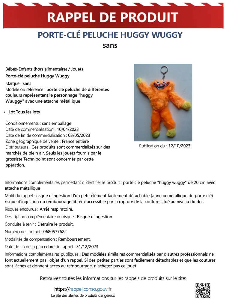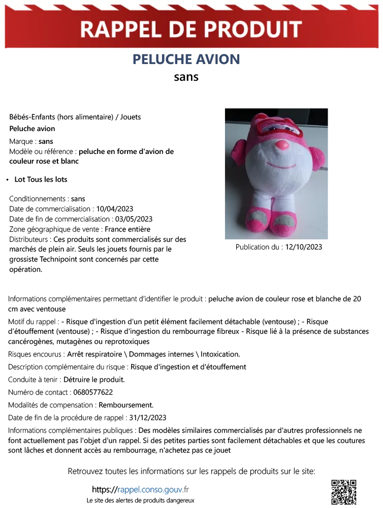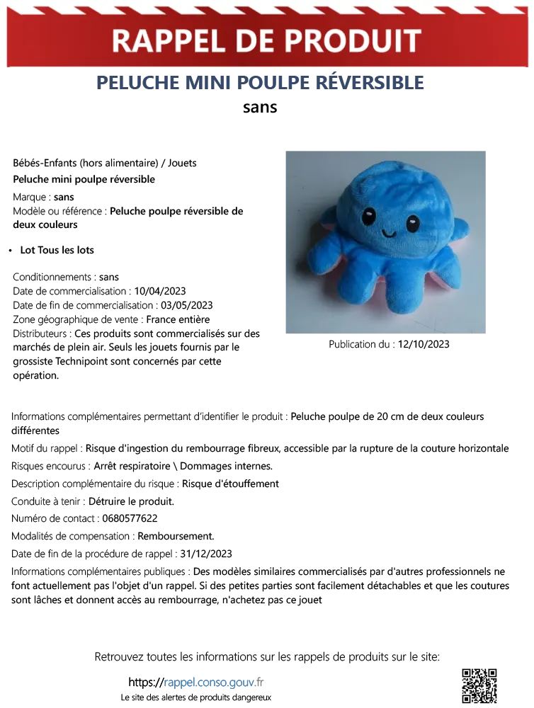 Malgré leur succès auprès des jeunes enfants, il s’avère que des problèmes de sécurité potentiels ont été identifiés. Pour garantir la sécurité des enfants, il est donc indiqué de cesser immédiatement l’utilisation de ces peluches et de les retourner au point de vente pour un remboursement.