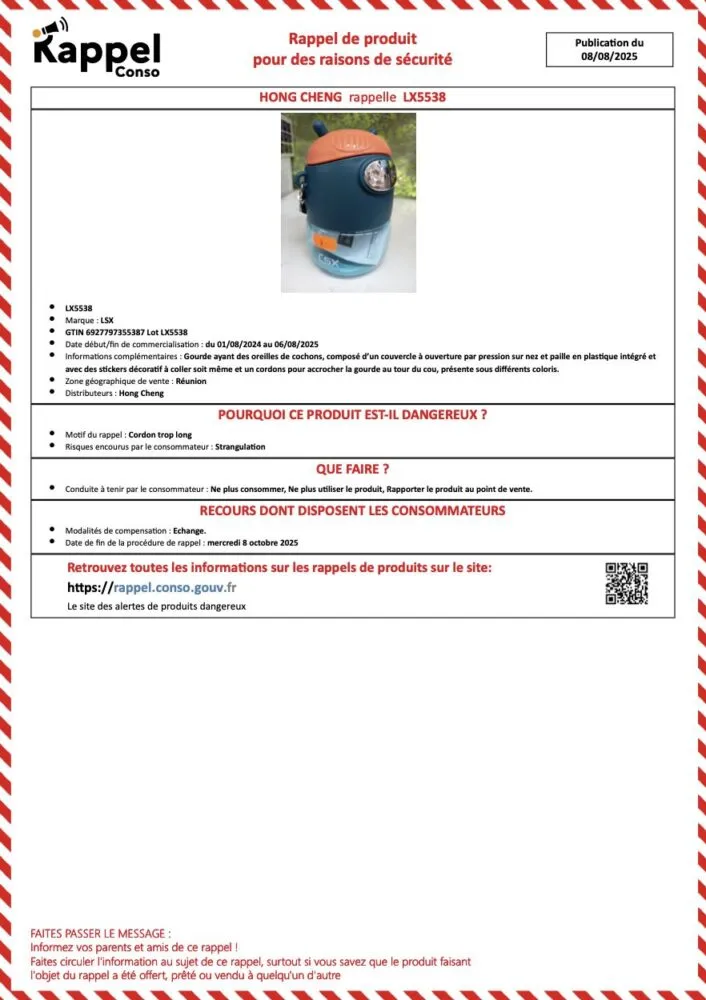 Plus d’informations sont disponibles sur le site officiel des alertes de produits dangereux : rappel.conso.gouv.fr
