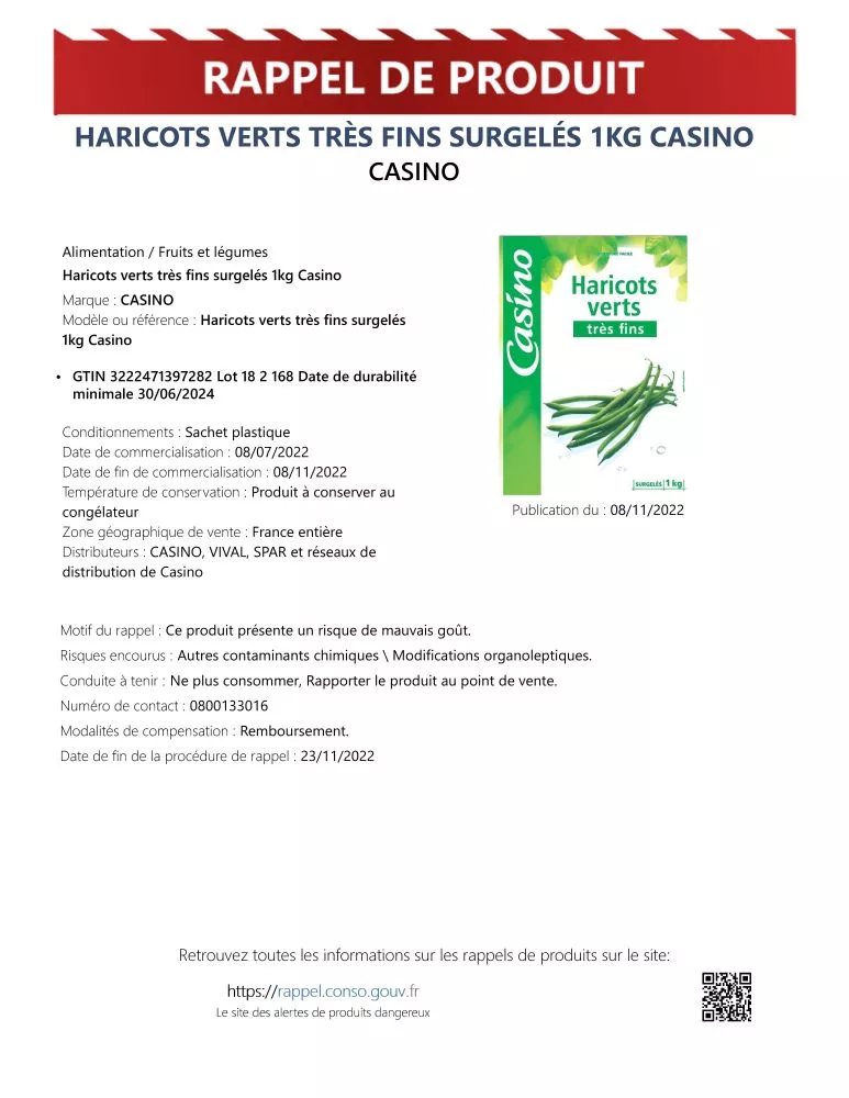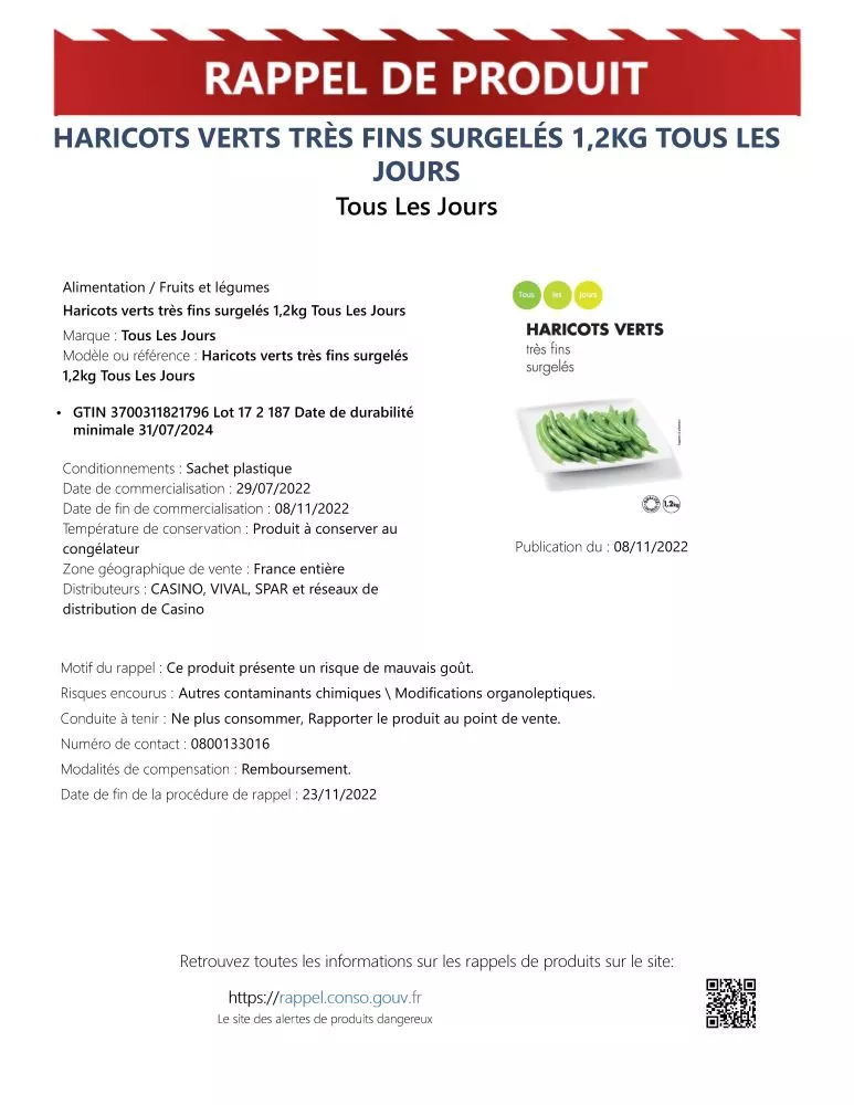 Actualités/Non classé Rappel produit : Haricots verts très fins surgelés, 1,2kg « Tous Les Jours », 1kg « Casino » par La rédaction F R 9 novembre 2022 1 min de lecture 2 Ne manquez pas toute l’actualité de La Réunion ! Abonnez-vous à la newsletter de Free Dom ! Valider Partager Facebook Twitter Pinterest Linkedin Whatsapp Reddit Email Vous pourriez être intéressé par 30 décembre 2025 Mardi 30 décembre 2025 – Météo, éphéméride et horoscope du jour 29 décembre 2025 Saint-Joseph : découverte de 2337 plants de cannabis, arrestation de 2 individus 29 décembre 2025 Point sur le réseau routier départemental, 29 décembre à 16H30 La rédaction F R 2 Commentaires Bin ns va mange sa mêmetout les jours. Répondre Signaler un commentaire Bin ns va mange sa mêmetout les jours. Répondre Signaler un commentaire Laisser un commentaire Annuler la réponseYour email address will not be published. Enregistrer mon nom, mon e-mail et mon site dans le navigateur pour mon prochain commentaire. Current ye@r * Leave this field empty Article précédent Ecologie : participez à Ambition Planète les 9 et 10 novembre 2022 à la NORDEV ! Article suivant St-Benoit : le bureau de Jean-Hugues Ratenon cambriolé pour la deuxième fois en un mois Articles récents... Hommage à Johnny Hallyday sur Free Dom 2 ce 5 décembre Mardi 30 décembre 2025 – Météo, éphéméride et horoscope du jour Saint-Joseph : découverte de 2337 plants de cannabis, arrestation de 2 individus Point sur le réseau routier départemental, 29 décembre à 16H30 Suicide sur le pont de la Rivière d’Abord : importante mobilisation des secours et des forces de l’ordre Radier submergé à Ilet Furcy : la route de Cilaos fermée à la circulation cette nuit Fortes pluies : appel à la plus grande prudence à Saint-Paul Saint-Gilles-les-Bains : une route impraticable, les riverains montent au créneau (VIDEOS) Très grands excès de vitesse : un délit passible de prison depuis le 29 décembre 2025 Fermeture temporaire du sentier de la Canalisation des Orangers (cirque de Mafate)
