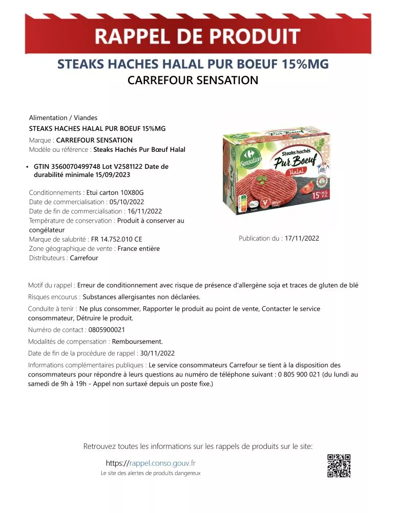 Actualités Rappel produit : Steaks hachés halal pur boeuf 15%mg « Carrefour Sensation » par La rédaction F R 18 novembre 2022 1 min de lecture Ne manquez pas toute l’actualité de La Réunion ! Abonnez-vous à la newsletter de Free Dom ! Valider Partager Facebook Twitter Pinterest Linkedin Whatsapp Reddit Email Vous pourriez être intéressé par 1 janvier 2026 Jeudi 1ᵉʳ janvier 2026 – Météo, éphéméride et horoscope du jour 31 décembre 2025 Mercredi 31 décembre 2025 – Météo, éphéméride et horoscope du jour 30 décembre 2025 Mardi 30 décembre 2025 – Météo, éphéméride et horoscope du jour La rédaction F R Laisser un commentaire Annuler la réponseYour email address will not be published. Enregistrer mon nom, mon e-mail et mon site dans le navigateur pour mon prochain commentaire. Current ye@r * Leave this field empty Article précédent La CCI Réunion célèbre la réussite de ses 540 diplômés (Vidéo – Photos) Article suivant Ste Suzanne : Georget Carpin 81 ans, chute mortellement d’un arbre Articles récents... Jeudi 1ᵉʳ janvier 2026 – Météo, éphéméride et horoscope du jour Mercredi 31 décembre 2025 – Météo, éphéméride et horoscope du jour Hommage à Johnny Hallyday sur Free Dom 2 ce 5 décembre Mardi 30 décembre 2025 – Météo, éphéméride et horoscope du jour Saint-Joseph : découverte de 2337 plants de cannabis, arrestation de 2 individus Point sur le réseau routier départemental, 29 décembre à 16H30 Suicide sur le pont de la Rivière d’Abord : importante mobilisation des secours et des forces de l’ordre Radier submergé à Ilet Furcy : la route de Cilaos fermée à la circulation cette nuit Fortes pluies : appel à la plus grande prudence à Saint-Paul Saint-Gilles-les-Bains : une route impraticable, les riverains montent au créneau (VIDEOS)