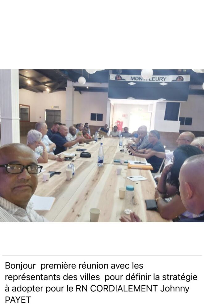 « Nous apprenons qu’une réunion de restructuration du bureau a été organisée ce jour, par le nouveau délégué départemental du Rassemblement National, Johnny Payet, maire de la Plaine des Palmistes. Seules quelques personnes ont été sélectionnées par le délégué départemental afin d’assister à cette réunion lors de laquelle il a nommé les membres du bureau et les nouveaux référents de communes.
