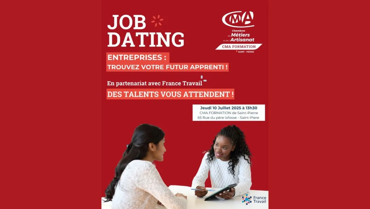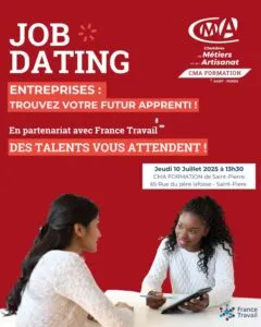 En collaboration avec France Travail, la CMA de La Réunion organise un Jobdating à Saint-Pierre, une opportunité unique de découvrir de jeunes talents motivés issus de différentes filières artisanales. Au programme : boulangerie, mécanique, coiffure, esthétique, menuiserie… Autant de secteurs qui recrutent et où le savoir-faire se transmet avec passion.