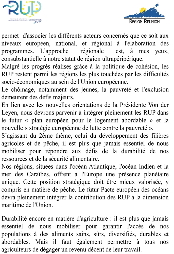 autant. Ensemble, nous pouvons construire un avenir durable et prospère pour les RUP au sein de l’Union européenne ».