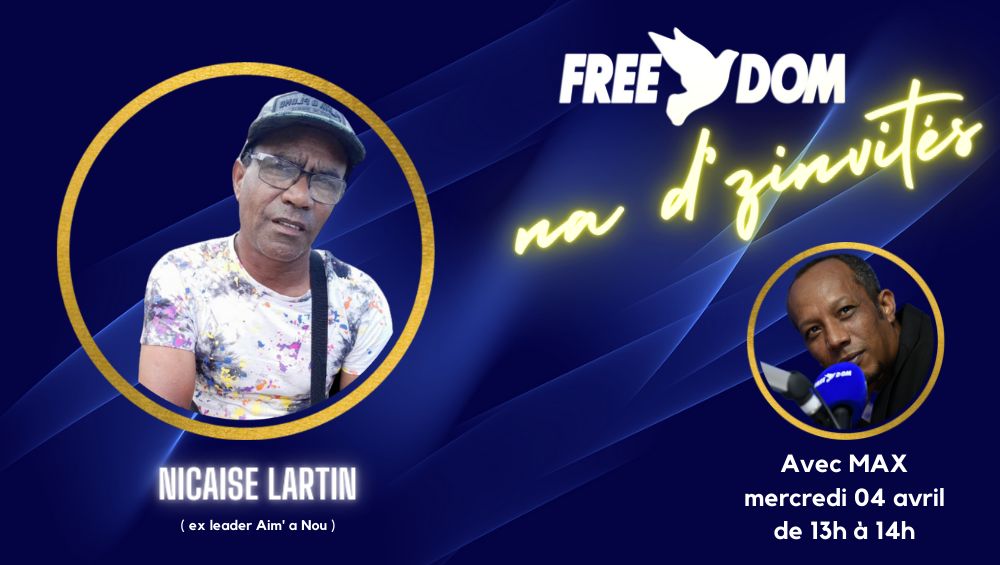 Free Dom Na D'Zinvités Rencontre avec Max Lauret dans l’émission Free Dom Na D’zinvités en Replay par Céline Hardelain 8 avril 2024 1 min de lecture 1 Ce mercredi 10 avril, de 13h à 14h, ne manquez pas l’émission Free Dom na d’zinvités animée par Max qui recevra Max Lauret, chanteur des séga. Une émission à retrouver en direct sur nos ondes Free Dom mais aussi depuis notre page Facebook. Ne manquez pas toute l’actualité de La Réunion ! Abonnez-vous à la newsletter de Free Dom ! Valider Partager Facebook Twitter Pinterest Linkedin Whatsapp Reddit Email Vous pourriez être intéressé par 23 octobre 2025 Alain Llorca du groupe Gold dans les studios de Radio Free Dom (Podcasts-VIDEOS) 27 août 2025 Free Dom na d’zinvités ; Replay disponible : Missty en live sur Free Dom ! 2 juillet 2025 Free Dom Na D’Zinvités en Replay : une heure de maloya avec Kultur Bourbon Céline Hardelain 1 Commentaire sera a l écoute a tout a l’heure bonne journée Répondre Signaler un commentaire Laisser un commentaire Annuler la réponseYour email address will not be published. Enregistrer mon nom, mon e-mail et mon site dans le navigateur pour mon prochain commentaire. Current ye@r * Leave this field empty Article précédent REPLAY : Nikaise Lartin, ex Leader du Groupe Aim A Nou Article suivant Replay : Clif Azor invité de l’émission Free Dom na d’zinvités Articles récents... Hommage à Johnny Hallyday sur Free Dom 2 ce 5 décembre Mardi 30 décembre 2025 – Météo, éphéméride et horoscope du jour Saint-Joseph : découverte de 2337 plants de cannabis, arrestation de 2 individus Point sur le réseau routier départemental, 29 décembre à 16H30 Suicide sur le pont de la Rivière d’Abord : importante mobilisation des secours et des forces de l’ordre Radier submergé à Ilet Furcy : la route de Cilaos fermée à la circulation cette nuit Fortes pluies : appel à la plus grande prudence à Saint-Paul Saint-Gilles-les-Bains : une route impraticable, les riverains montent au créneau (VIDEOS) Très grands excès de vitesse : un délit passible de prison depuis le 29 décembre 2025 Fermeture temporaire du sentier de la Canalisation des Orangers (cirque de Mafate)