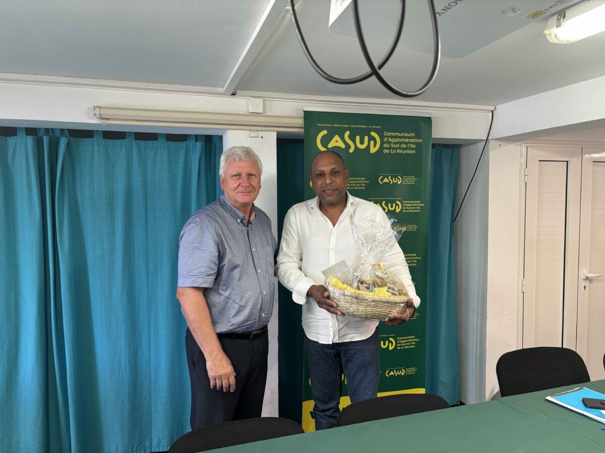 Le Président de la CASUD, Jacquet Hoarau et celui de la Chambre de Commerce et d’Industrie de La Réunion, Pierrick Robert, se sont rencontrés lors d’une réunion de travail dans les locaux de l’intercommunalité ce mardi 11 février 2025.