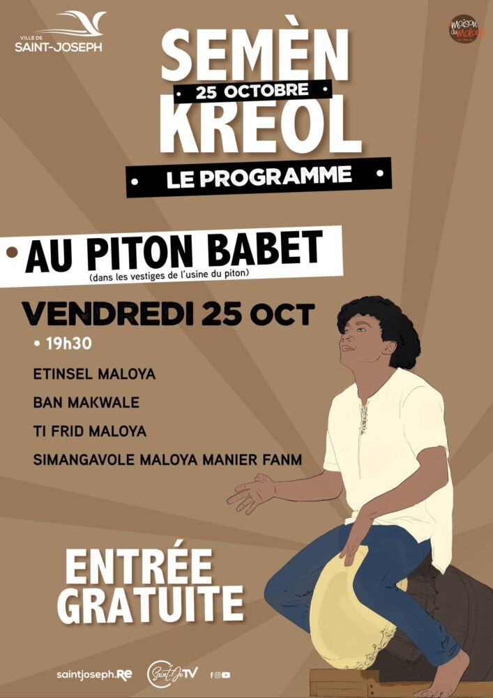 Saint-Joseph vous donne rendez-vous ce vendredi 25 octobre dans les vestiges de l’usine du Piton à la caverne des hirondelles à l’occasion de la semén kréol !