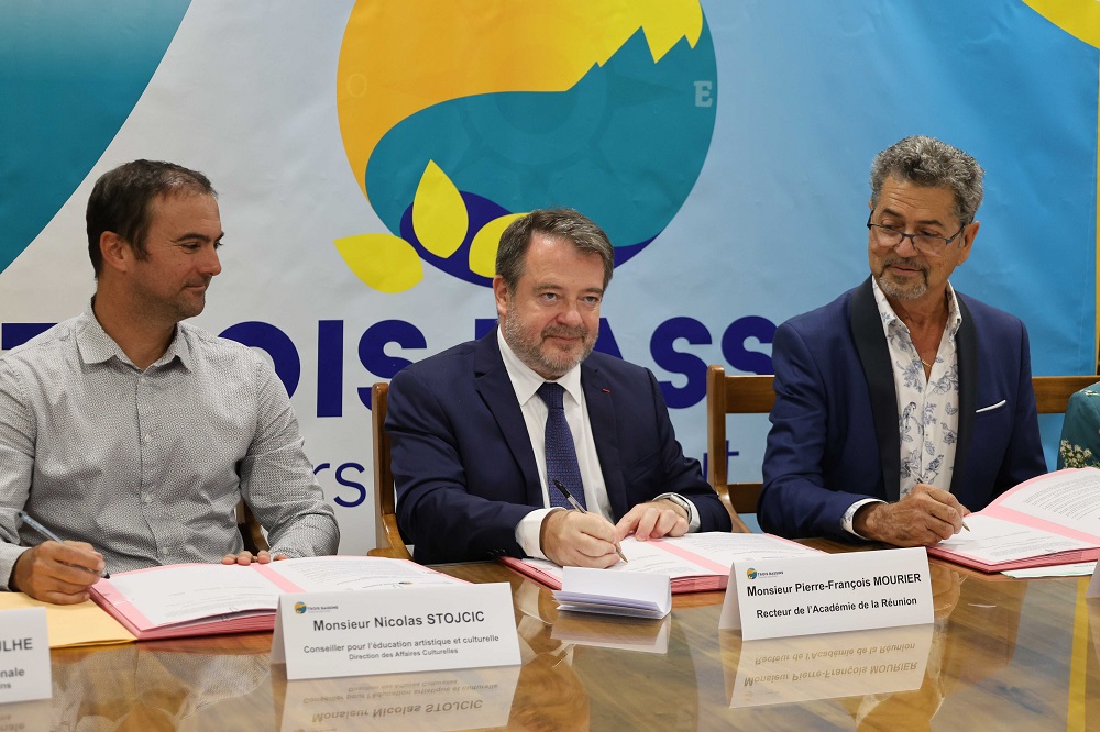 Dans une démarche visant à promouvoir l’éducation artistique et culturelle au sein de la région, le recteur de région académique, Pierre-François Mourier, s’est rendu ce matin du jeudi 28 mars à Trois-Bassins pour la signature du renouvellement du Contrat Local d’Éducation Artistique (CLÉA).