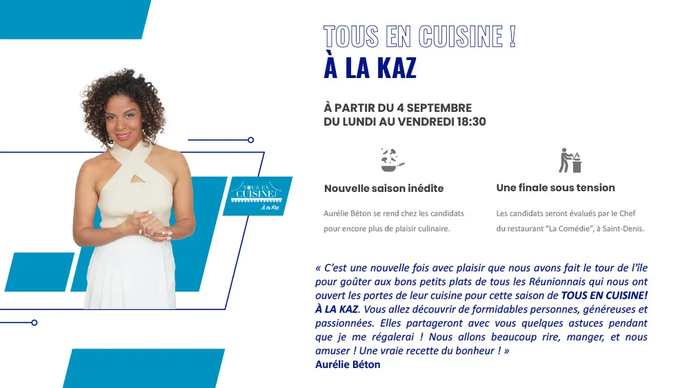 « Prête et ravie de vous retrouver pour cette rentrée Ansanm ! Rendez-vous chaque jour pour LE 12H30 : un journal au cœur de l’actualité, avec vous. L’information à chaud, les évènements du jour près de chez vous, vos réactions et des directs sur des faits marquants, ainsi qu’une mise en lumière de nos richesses
