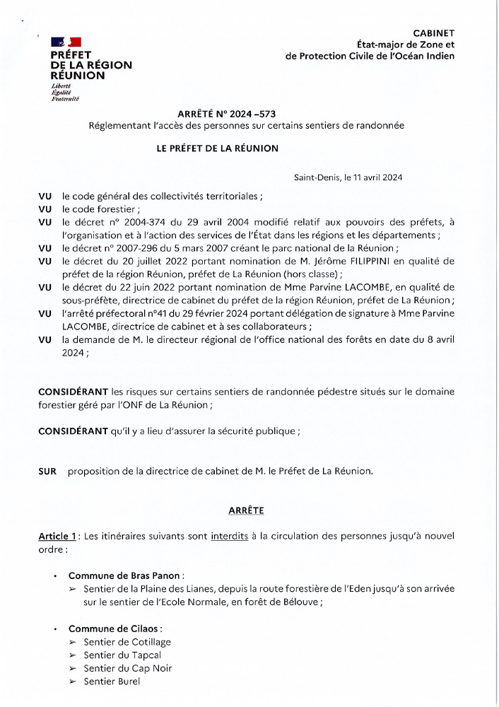 En référence à l’arrêté préfectoral n°2024-573 ci-joint, et suite aux travaux effectués sur certains sentiers de randonnée pédestre situés sur le domaine forestier géré par l’ONF, certains sentiers peuvent être rouverts, notamment