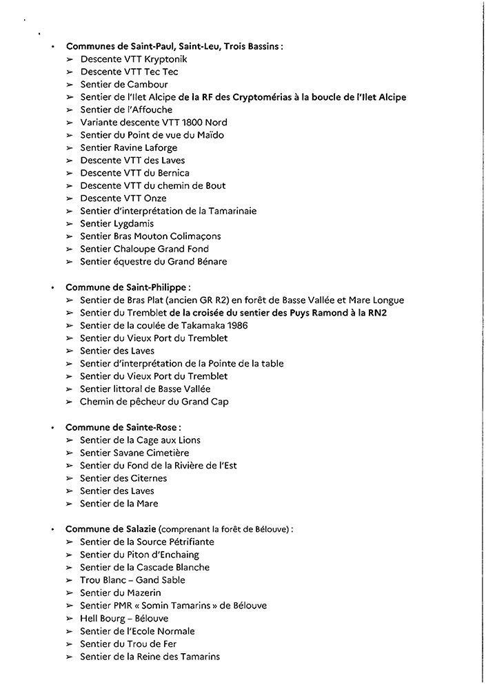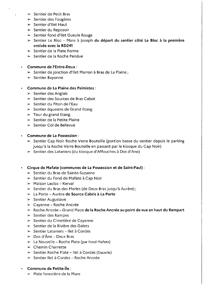 - le tronçon du sentier de l’Ilet à Guillaume permettant de rallier La Fenêtre depuis la RD41 (la descente vers l’Ilet à Guillaume est toujours interdite)