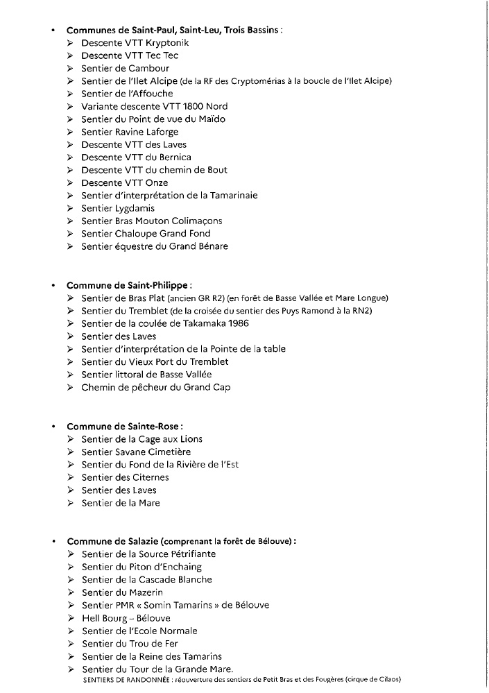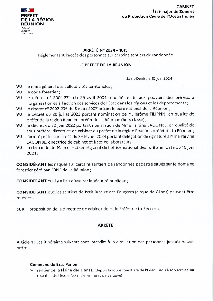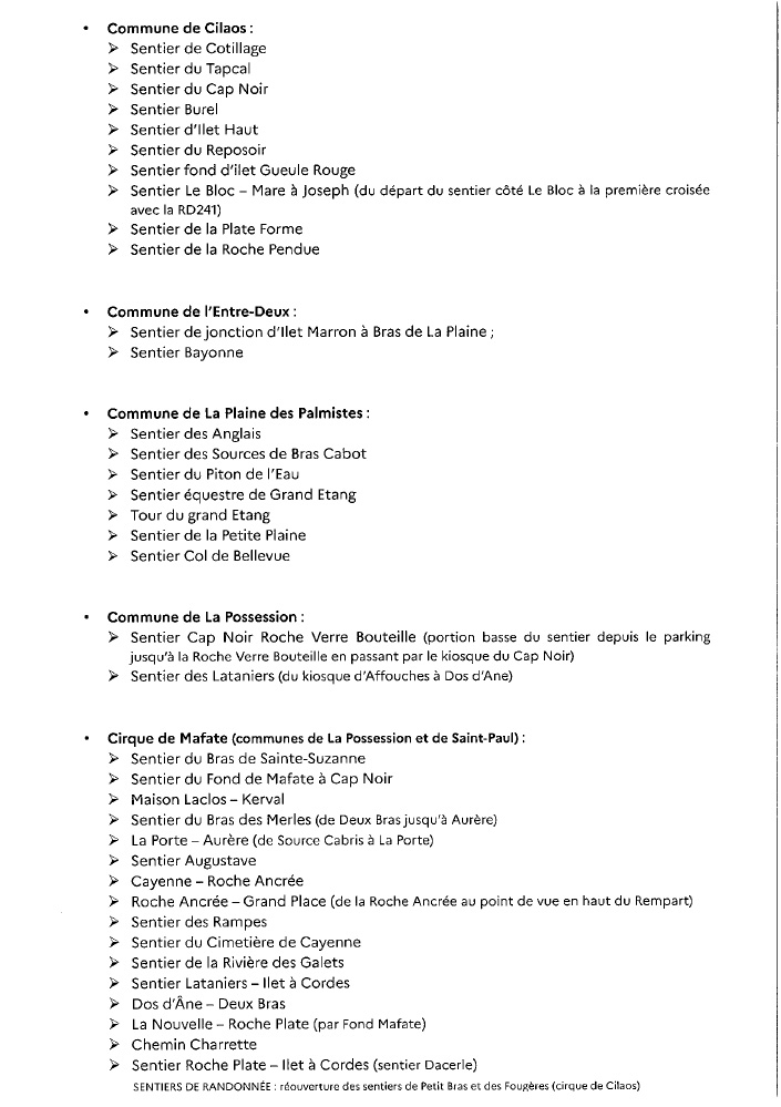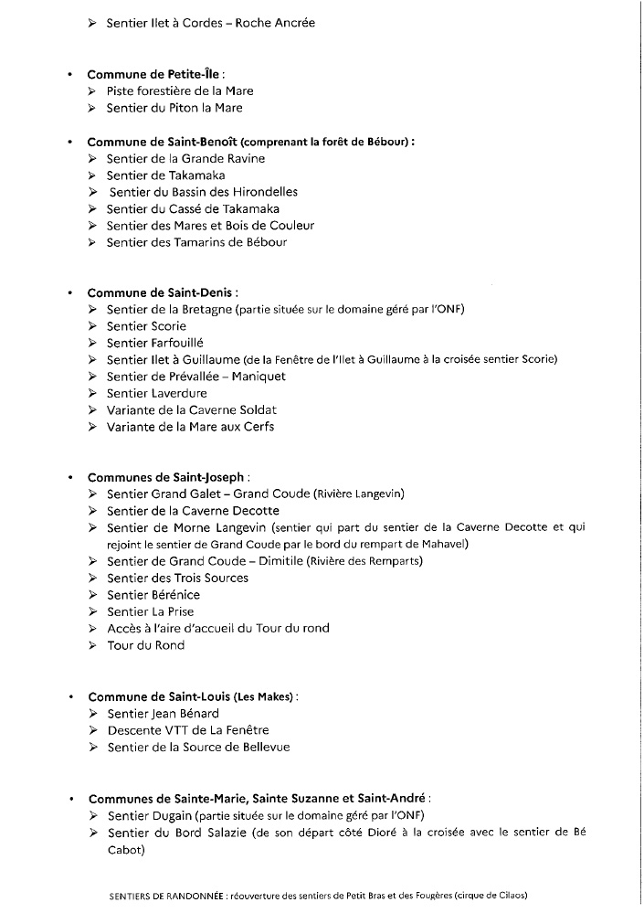 Actualités Réouverture des sentiers de Petit Bras et des Fougères (cirque de Cilaos) par Céline Hardelain 11 juin 2024 1 min de lecture Suite aux travaux réalisés par les équipes de l’ONF, les sentiers de Petit Bras et des Fougères, situés à Cilaos, peuvent être rouverts. Ne manquez pas toute l’actualité de La Réunion ! Abonnez-vous à la newsletter de Free Dom ! Valider Partager Facebook Twitter Pinterest Linkedin Whatsapp Reddit Email Vous pourriez être intéressé par 2 janvier 2026 1 janvier 2026 Jeudi 1ᵉʳ janvier 2026 – Météo, éphéméride et horoscope du jour 31 décembre 2025 Mercredi 31 décembre 2025 – Météo, éphéméride et horoscope du jour Céline Hardelain Laisser un commentaire Annuler la réponseYour email address will not be published. Enregistrer mon nom, mon e-mail et mon site dans le navigateur pour mon prochain commentaire. Current ye@r * Leave this field empty Article précédent Circulation interdite sur la RN1A à St-Paul, du 11 au 13 juin de 20h à 5h Article suivant Fermeture nocturne de la RN2 à St-Denis pour travaux d’inspection du Pont Pasteur le 13 juin Articles récents... Jeudi 1ᵉʳ janvier 2026 – Météo, éphéméride et horoscope du jour Mercredi 31 décembre 2025 – Météo, éphéméride et horoscope du jour Hommage à Johnny Hallyday sur Free Dom 2 ce 5 décembre Mardi 30 décembre 2025 – Météo, éphéméride et horoscope du jour Saint-Joseph : découverte de 2337 plants de cannabis, arrestation de 2 individus Point sur le réseau routier départemental, 29 décembre à 16H30 Suicide sur le pont de la Rivière d’Abord : importante mobilisation des secours et des forces de l’ordre Radier submergé à Ilet Furcy : la route de Cilaos fermée à la circulation cette nuit Fortes pluies : appel à la plus grande prudence à Saint-Paul