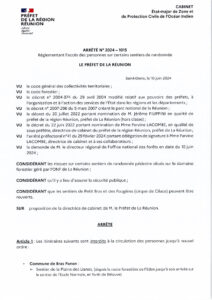Arrêté n°2024-1015 du 10 juin 2024_réouverture des sentiers de Petit Bras et des Fougères (cirque de Cilaos)-1 par Céline Hardelain 11 juin 2024 1 min de lecture Ne manquez pas toute l’actualité de La Réunion ! Abonnez-vous à la newsletter de Free Dom ! Valider Partager Facebook Twitter Pinterest Linkedin Whatsapp Reddit Email Céline Hardelain Laisser un commentaire Annuler la réponseYour email address will not be published. Enregistrer mon nom, mon e-mail et mon site dans le navigateur pour mon prochain commentaire. Current ye@r * Leave this field empty Articles récents... Jeudi 1ᵉʳ janvier 2026 – Météo, éphéméride et horoscope du jour Mercredi 31 décembre 2025 – Météo, éphéméride et horoscope du jour Hommage à Johnny Hallyday sur Free Dom 2 ce 5 décembre Mardi 30 décembre 2025 – Météo, éphéméride et horoscope du jour Saint-Joseph : découverte de 2337 plants de cannabis, arrestation de 2 individus Point sur le réseau routier départemental, 29 décembre à 16H30 Suicide sur le pont de la Rivière d’Abord : importante mobilisation des secours et des forces de l’ordre Radier submergé à Ilet Furcy : la route de Cilaos fermée à la circulation cette nuit Fortes pluies : appel à la plus grande prudence à Saint-Paul