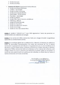 Arrêté n°2024-425 du 12 mars 2024 réglementant l’accès des personnes sur certains sentiers de randon-5 par Céline Hardelain 12 mars 2024 1 min de lecture Ne manquez pas toute l’actualité de La Réunion ! Abonnez-vous à la newsletter de Free Dom ! Valider Partager Facebook Twitter Pinterest Linkedin Whatsapp Reddit Email Céline Hardelain Laisser un commentaire Annuler la réponseYour email address will not be published. Enregistrer mon nom, mon e-mail et mon site dans le navigateur pour mon prochain commentaire. Current ye@r * Leave this field empty Articles récents... Jeudi 1ᵉʳ janvier 2026 – Météo, éphéméride et horoscope du jour Mercredi 31 décembre 2025 – Météo, éphéméride et horoscope du jour Hommage à Johnny Hallyday sur Free Dom 2 ce 5 décembre Mardi 30 décembre 2025 – Météo, éphéméride et horoscope du jour Saint-Joseph : découverte de 2337 plants de cannabis, arrestation de 2 individus Point sur le réseau routier départemental, 29 décembre à 16H30 Suicide sur le pont de la Rivière d’Abord : importante mobilisation des secours et des forces de l’ordre Radier submergé à Ilet Furcy : la route de Cilaos fermée à la circulation cette nuit Fortes pluies : appel à la plus grande prudence à Saint-Paul
