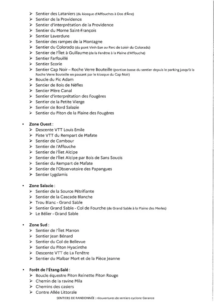 Suite aux travaux et/ou évaluations d’état de certains sentiers de randonnée pédestre situés sur le domaine forestier géré par l’ONF de La Réunion à la suite du passage du cyclone Garance, certains sentiers ont été rouverts.