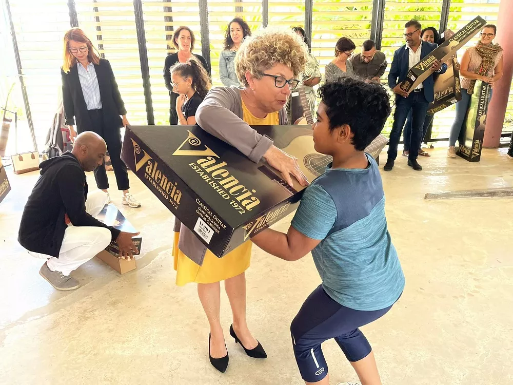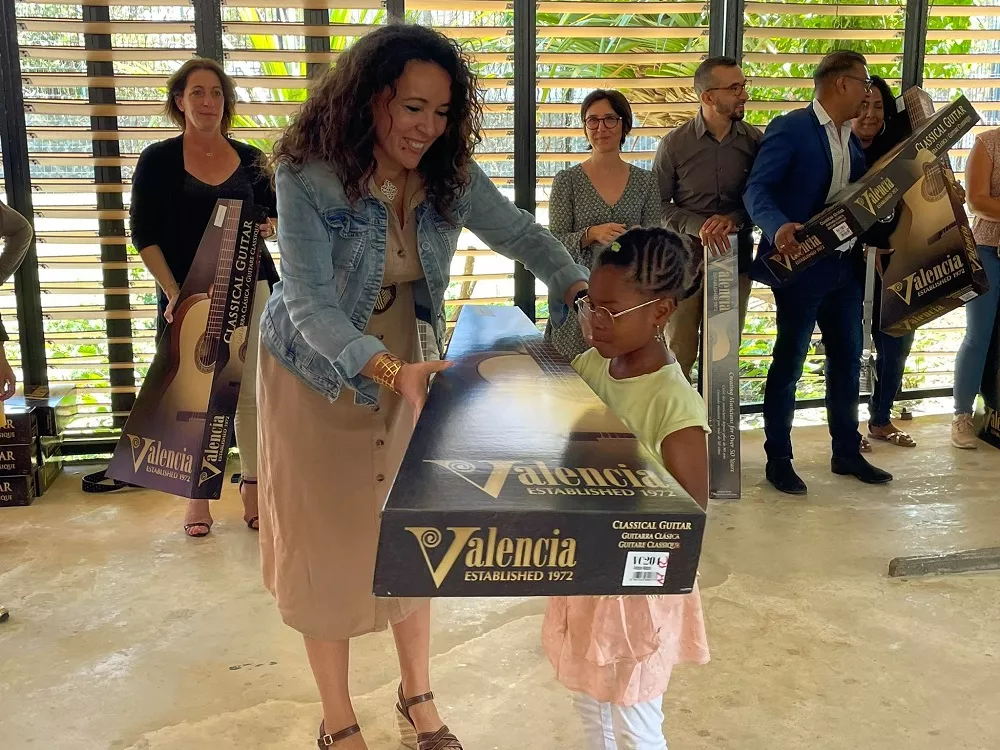 Ce mardi 22 septembre 2022 a eu lieu la remise des guitares aux 22 élèves de l’école Jean Jaurès de Saint-Pierre, en présence des parents, des bailleurs sociaux, des enseignants et représentants de l’éducation nationale et des élus.