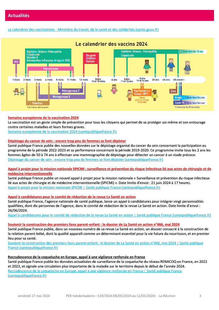 Point épidémiologique régional de la semaine 19 (6 au 12 mai 2024).