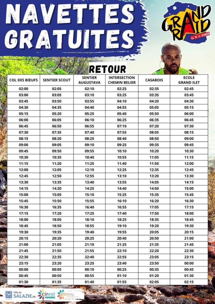 Le Réseau ESTIVAL met à disposition des usagers des navettes gratuites afin de faciliter vos déplacements durant le Grand Raid ! Du Vendredi 18 octobre à 2h00 du matin jusqu’au samedi 19 octobre à 8h30, des navettes seront en circulation.