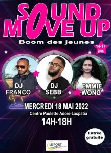 Dj Franco, Dj Sebb et Emmi Wong… du beau monde pour la grande fête des jeunes et pour relancer le Sound Move Up. Le rendez-vous des 14-17 ans fait son grand retour dans la ville le mercerdi 18 mai 2022 de 14h à 18h.