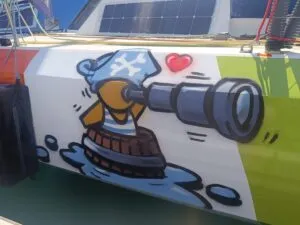 Quant à Jace , l’artiste ultra connu mondialement a « tatoué » des gouzous uniques sur la coque du bateau.