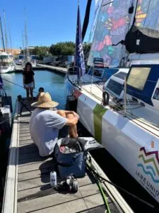 Le bateau Free Dom et son équipage la Team HUA dirigée par Thibaut Lefévère continue son escale réunionnaise, en attendant la prochaine étape du Globe 40 : l’Australie. En attendant, les réunionnais, auditeurs se pressent au Port pour voir le bateau, rencontrer les équipes, au travers d’une belle séance de dédicaces, les rencontres aves nos animateurs, Francky était sur place ce dimanche….