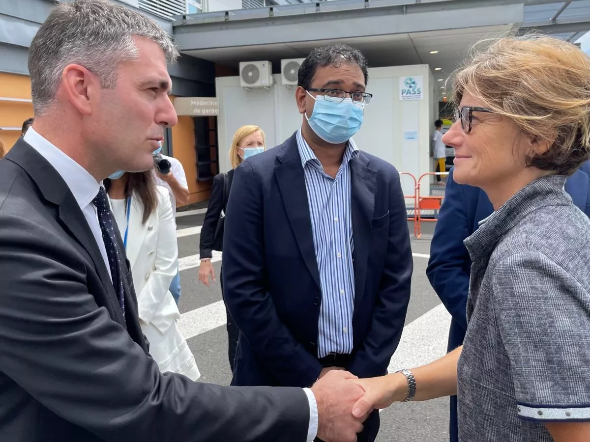 La ministre Agnès Firmin Le Bodo a été accueillie par le directeur du CHU Lionel Calenge.