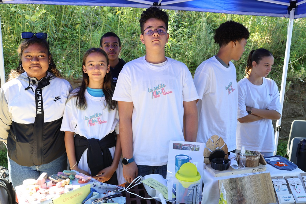 Le collège Raymond-Lucas, de l’Etang-Salé, présentait, lui, sa ferme pédagogique, Ti bazar vert, montée il y a quatre ans et qui, avec un jardin de 200 m2 travaillé par tous les élèves volontaires pendant les heures de permanence, permet de produire des œufs, mais aussi des bananes, des salades, des brèdes, des bringelles, des citrons ou du miel… que les enseignants achètent. Ce qui permet de financer le projet lui-même, voire des sorties.