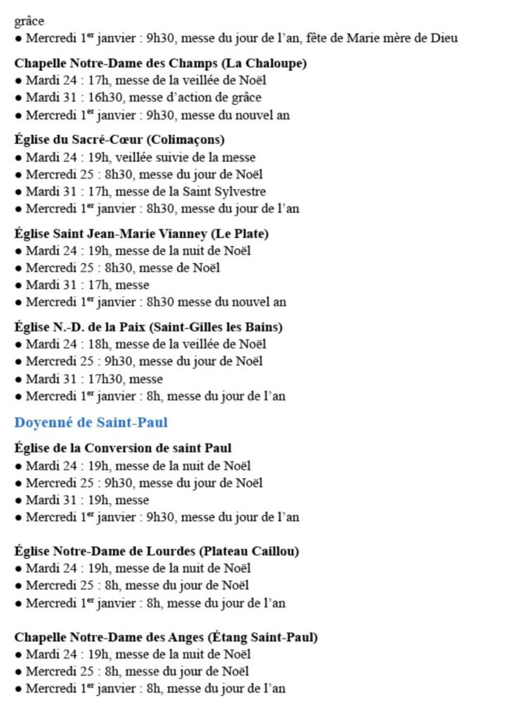 Capture d’écran 2024-12-22 à 12.52.28 par La Rédaction 22 décembre 2024 1 min de lecture Ne manquez pas toute l’actualité de La Réunion ! Abonnez-vous à la newsletter de Free Dom ! Valider Partager Facebook Twitter Pinterest Linkedin Whatsapp Reddit Email La Rédaction Laisser un commentaire Annuler la réponseYour email address will not be published. Enregistrer mon nom, mon e-mail et mon site dans le navigateur pour mon prochain commentaire. Current ye@r * Leave this field empty Articles récents... Jeudi 1ᵉʳ janvier 2026 – Météo, éphéméride et horoscope du jour Mercredi 31 décembre 2025 – Météo, éphéméride et horoscope du jour Hommage à Johnny Hallyday sur Free Dom 2 ce 5 décembre Mardi 30 décembre 2025 – Météo, éphéméride et horoscope du jour Saint-Joseph : découverte de 2337 plants de cannabis, arrestation de 2 individus Point sur le réseau routier départemental, 29 décembre à 16H30 Suicide sur le pont de la Rivière d’Abord : importante mobilisation des secours et des forces de l’ordre Radier submergé à Ilet Furcy : la route de Cilaos fermée à la circulation cette nuit Fortes pluies : appel à la plus grande prudence à Saint-Paul Saint-Gilles-les-Bains : une route impraticable, les riverains montent au créneau (VIDEOS)