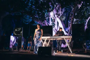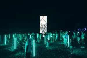 Autre moment fort : “ENTRE_MONDES”, installation sensorielle signée Simon Rouby, Nadir Bouassria et Teurk, où sable, eau et ferrofluide réagissent aux gestes du public, révélant les flux invisibles entre les êtres et les éléments.