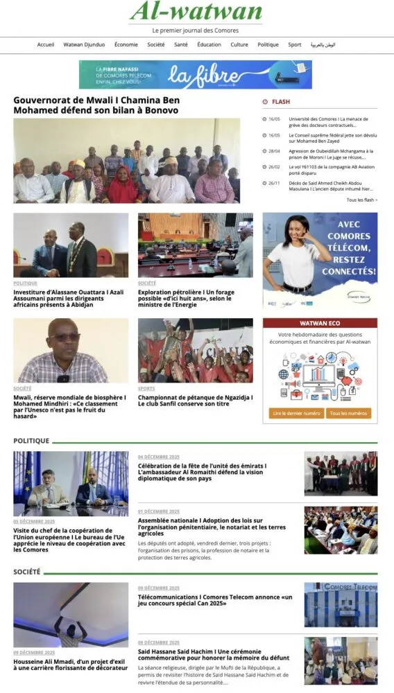Al-Watwan consacre sa une au gouvernorat de Mwali, où Chamina Ben Mohamed défend son bilan.