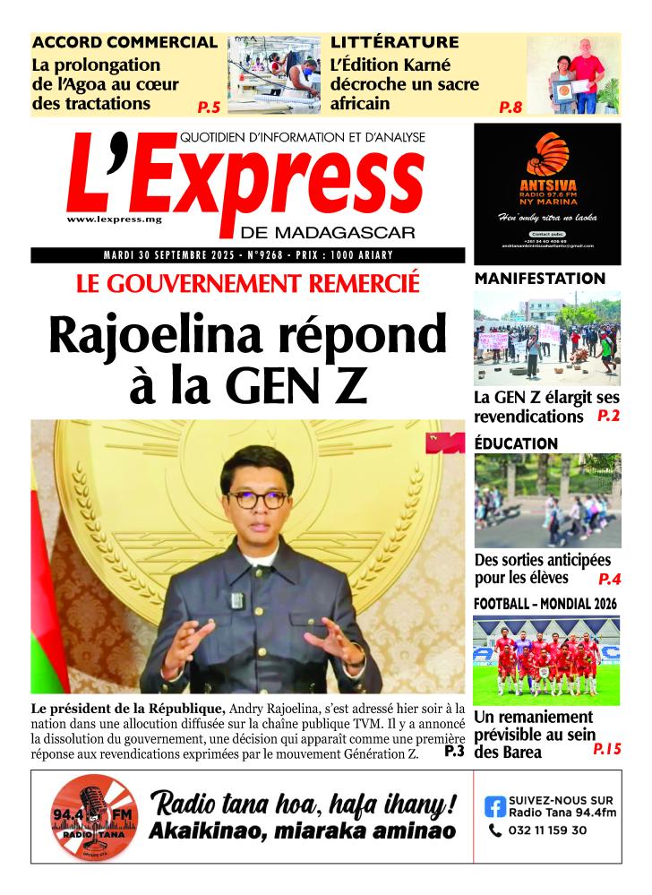 À Madagascar, la crise politique franchit un nouveau cap. L’Express annonce que le président Andry Rajoelina a dissous son gouvernement. Dans un contexte de manifestations menées par la Génération Z, le chef de l’État tente de reprendre l’initiative en promettant un virage politique et en affichant une fermeté vis-à-vis des coupures d’électricité et de la contestation sociale. Ce geste marque une réponse directe aux mobilisations qui secouent la capitale depuis plusieurs jours. Les tensions restent toutefois vives et les prochaines annonces seront scrutées de près.