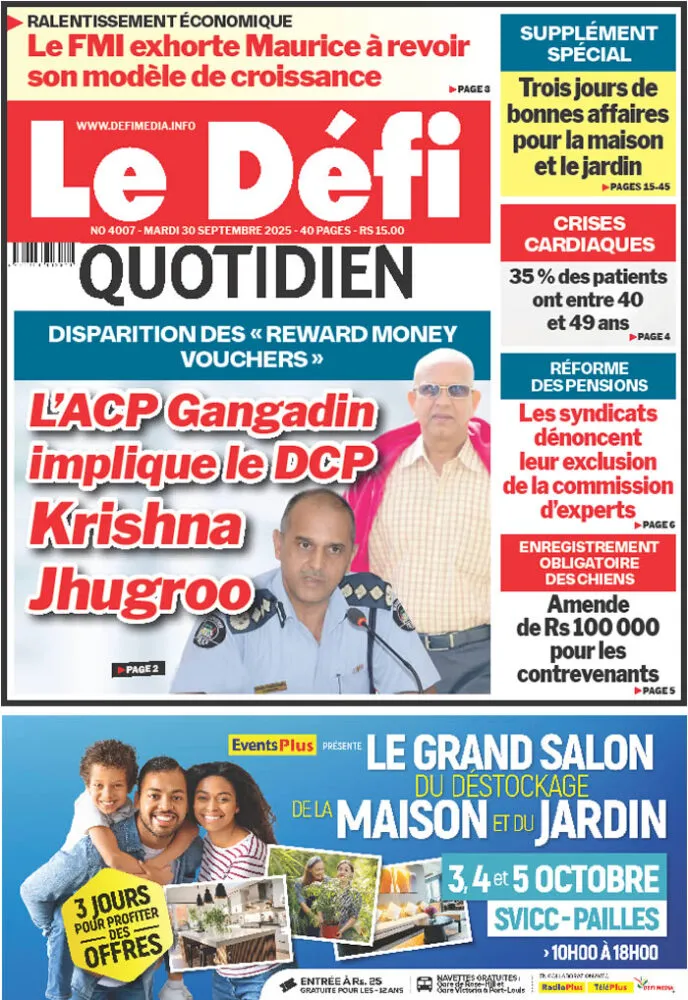À Maurice, Le Défi Quotidien revient avec insistance sur le dossier explosif des « Reward Money vouchers ». L’ACP Gangadin met directement en cause le DCP Krishna Jhugroo dans cette affaire de bons de paiement introuvables, un feuilleton judiciaire et politique qui secoue la police mauricienne et ravive les soupçons de corruption. L’actualité économique est tout aussi préoccupante : le FMI exhorte le pays à revoir son modèle de croissance, tandis que les syndicats dénoncent leur exclusion des débats sur la réforme des retraites. Enfin, une mesure forte frappe les contrevenants : l’enregistrement obligatoire des chiens devient la règle, avec des amendes atteignant 100 000 roupies.