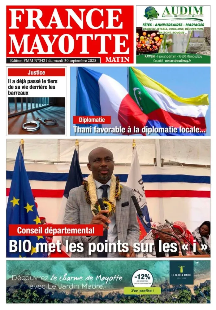 À Mayotte, France Mayotte Matin s’attarde sur l’action politique du président du conseil départemental, Ben Issa Ousseni, alias BIO, qui veut marquer sa différence en clarifiant ses positions. Diplomatie locale, réorganisation institutionnelle et crise migratoire permanente sont en toile de fond. La justice, elle, met en lumière le parcours d’un détenu ayant passé un tiers de sa vie derrière les barreaux, révélant les failles du système carcéral.