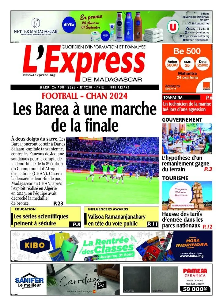 Du côté de Madagascar, L’Express fait sa une sur le scandale des Boeing 777 immatriculés dans le pays et retrouvés en Iran. Vingt-deux personnes, dont des responsables de l’aviation civile, ont été placées en détention préventive. L’affaire soulève de lourdes questions sur la transparence et la gestion des autorités.