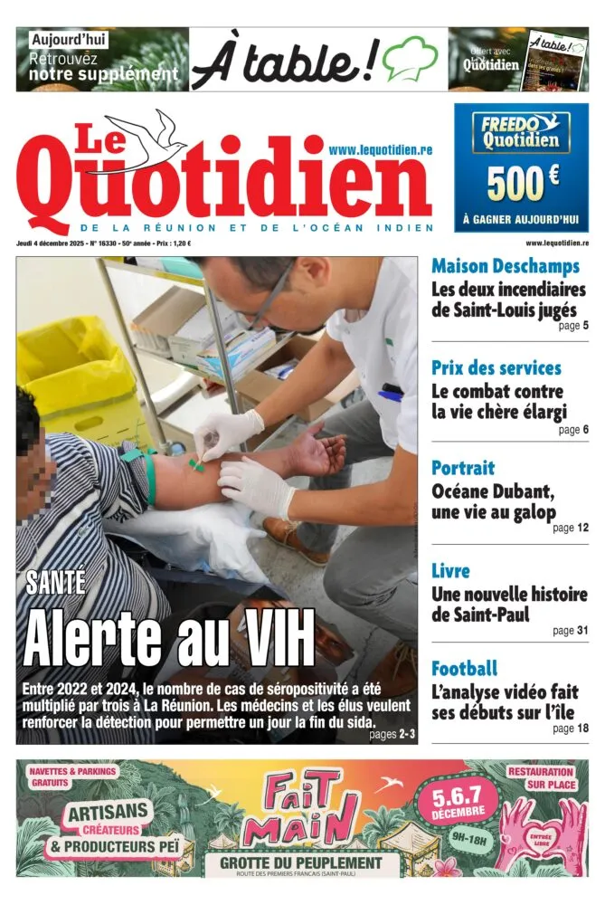 Le Quotidien met en avant une alerte au VIH, avec une flambée des cas de séropositivité depuis 2022. Les médecins s’inquiètent d’une progression rapide et appellent à renforcer la détection. Le journal revient aussi sur plusieurs faits divers et dossiers locaux, dont le procès des incendiaires de Saint-Louis ou encore la lutte contre la vie chère.