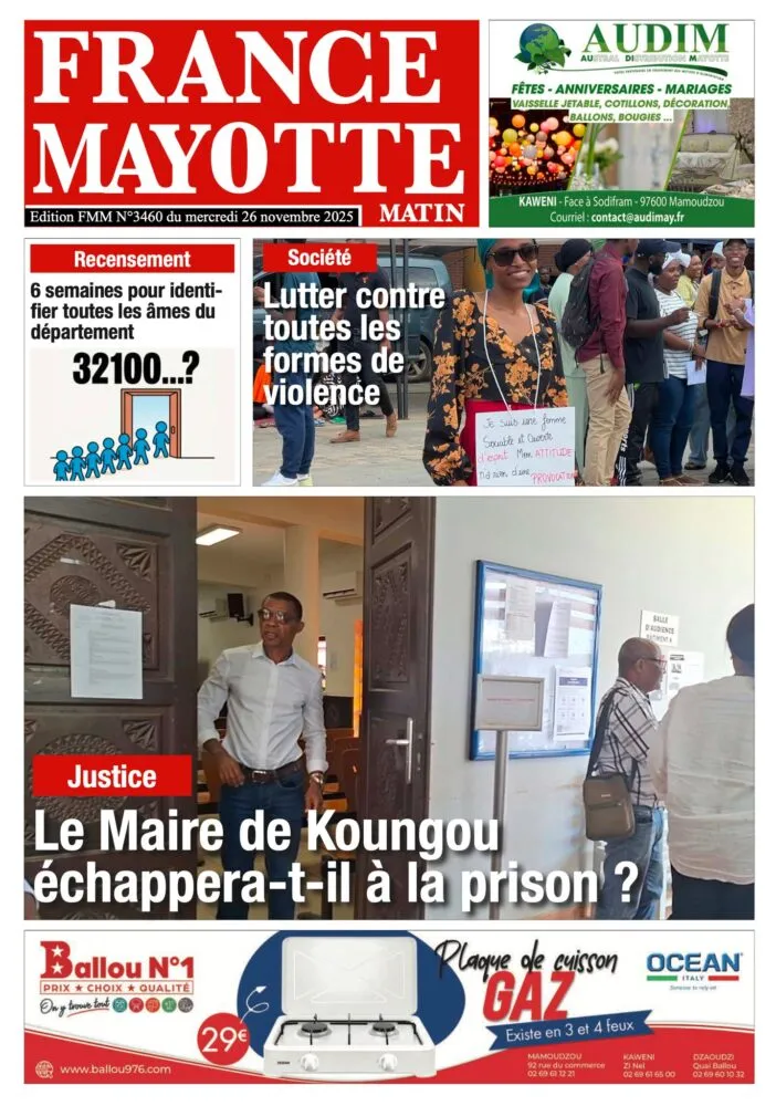 France Mayotte Matin met en lumière l’opération de recensement visant à identifier l’ensemble des habitants du département en six semaines. Le quotidien aborde aussi la question de la lutte contre les violences sous toutes leurs formes, et s’interroge sur l’avenir judiciaire du maire de Koungou, dont le sort pourrait basculer dans l’affaire en cours.