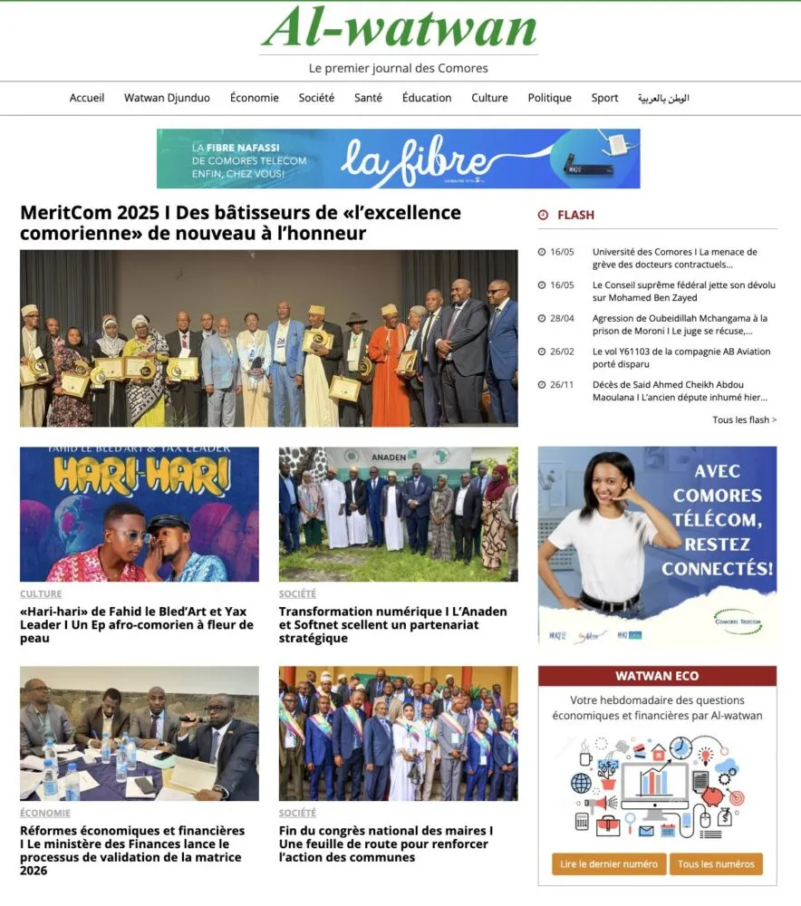 Al-watwan met en avant le congrès national des maires, qui marque un premier pas vers un transfert de ressources budgétisées aux communes. Le quotidien évoque également les suites judiciaires de l’affaire Akibadou Issoufa, ainsi que les performances des Comores aux Jeux africains de la jeunesse 2025, où le beach-volley et l’athlétisme se distinguent. Le journal revient enfin sur les enjeux culturels autour du Zifafa, présenté comme un levier potentiel de développement.