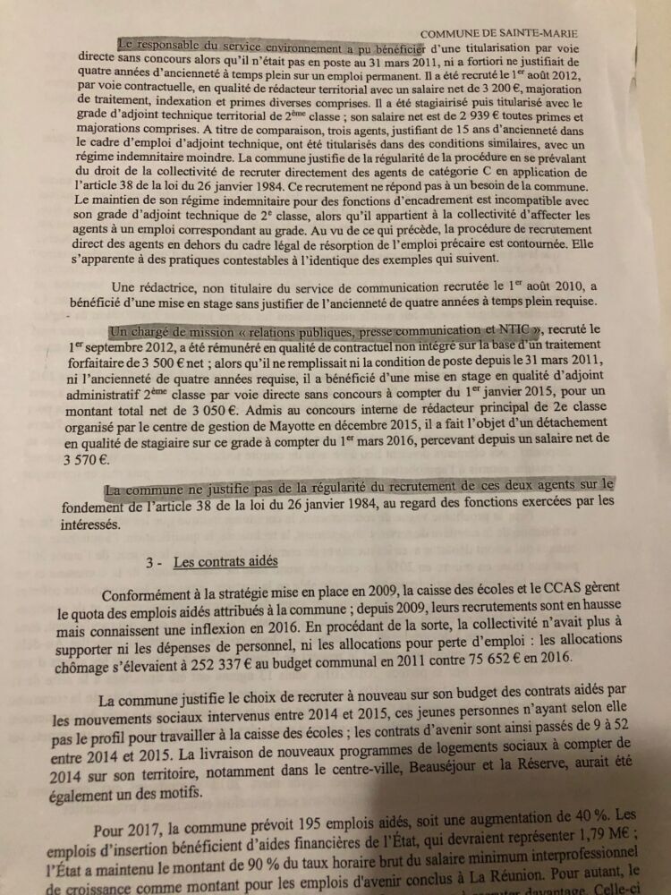 3. bonjour cher ste Mariens au moins ce qui est clair c’es que la famille Lagourgue croque et fait croquer les amis et les collaborateurs l’embauche illégale d’Emmanuel Virin pour 3500 euros 1 an de mairie et titulaire c’est dégeulasse pour nous militant de toujours , Jean Jacques Vlaminck à l’environnement . je comprends maintenant VIRIN attaché parlementaire de JLL fait la campagne de Rémy sans famille lui qui viens de la bretagne ( quartié de Gérald maillot) il pense nous donner des ordres chez nous a Ste Marie , monsieur le procureur vérifié avec attention ce concours de Mayotte svp.