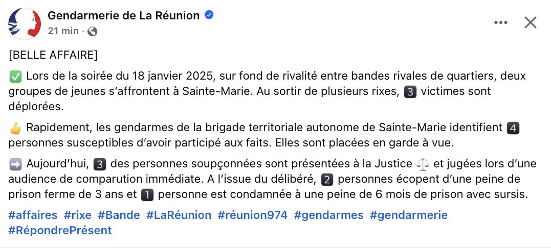 Rixe à Sainte-Marie : les gendarmes satisfaits de la condamnation des délinquants